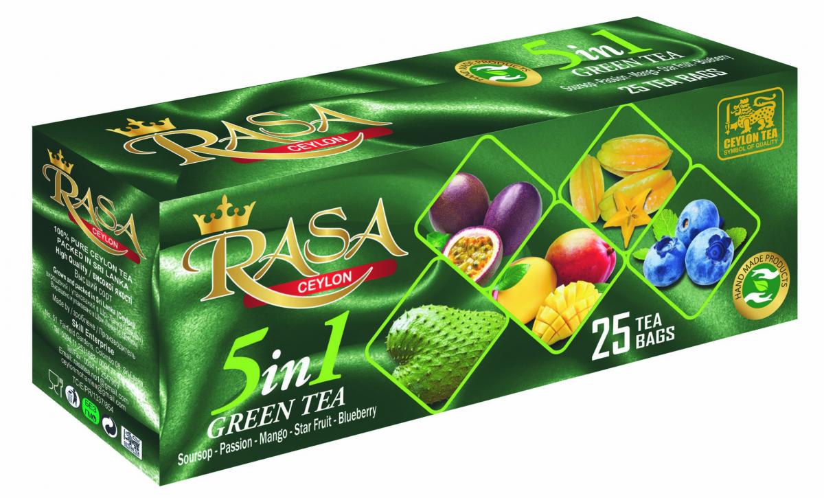 Цейлонський Зелений чай з натуральним смаком саусепа, маракуї, тропічних фруктів, лісових ягід і полуниці.